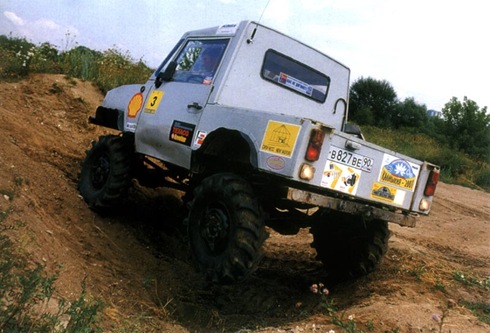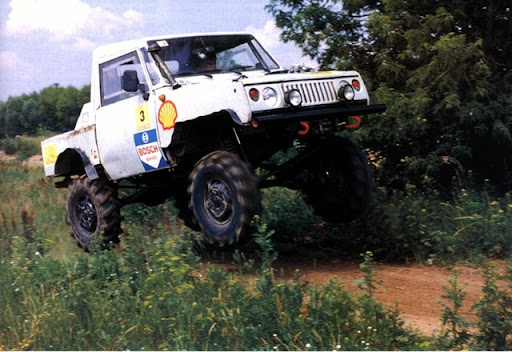 С первого же взгляда было ясно - перед нами не УАЗ-3171 и не УАЗ-3172, а спортивный прототип, построенный на базе этих машин. Что ж, давайте разбираться, откуда что взялось, как срослось и что в итоге получилось... К моему удивлению, ответ на первый вопрос оказался достаточно прост: Володя живет в подмосковных Бронницах, а, как известно, именно там расположен знаменитый на всю страну полигон, дающий путевки в жизнь всем образцам колесной техники сначала Советской, а ныне Российской армии. Причем обычно происходит это следующим образом: сперва испытатели полигона подвергают машины самым изощренным издевательствам, а затем разбирают до винтика, оценивая, как отреагировали различные узлы и агрегаты. Ну а в результате вышеописанного процесса на свет рождаются толстые папки с техническими отчетами и... масса бесхозного железа. Вы уже, наверное, догадались, что наш сегодняшний "боевой медведь" и был, как Феникс из пепла, возрожден из останков погибших во славу технического прогресса автомобилей.