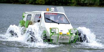 Болота, ручьи, затопленные участки грунта, по которым уже нельзя ехать, но еще не получается плыть, вездеход форсирует играючи: низкое давление на грунт не дает проваливаться, а цепкие пневматики все время находят мгновенную точку опоры — грунтовую или водную.