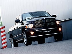 На огромнейшей фальшрадиаторной решетке – хромированные прутья. На контрасте с огромным черным кузовом блеска маловато. Что делать? Повесить соответствующий кенгурин? Так он весить будет килограммов 100... Памятуя о том, что «бабушкоотбойники» (это какого же размера должна быть бабушка?) скоро в Европе запретят, Startech пошел иным путем. Одну не очень толстую, но прочную на вид хромированную трубу пустили по всей длине юбки переднего бампера, вторую прикрутили чуть выше – в центральной части бампера. Получилось изящно, насколько может быть изящным декор автомобиля, способного таранить 40-футовые фуры. Дальше само пошло. Длинные-предлинные трубы подчеркнули линию порогов и эти самые пороги защитили. Задний бампер по низу украсили двумя хромированными трубами, закрепив их по углам. Большая хромированная насадка на выхлопную трубу с логотипом завершила композицию. Подобный «обвес» часто делает машину приземистой. Но не на этот раз. Большой Dodge стал стремительным. Визуально уменьшить «рост» автомобиля, в кабину которого надо карабкаться, просто невозможно. В сочетании с большими низкопрофильными колесами мы имеем нечто из ряда вон выходящее.